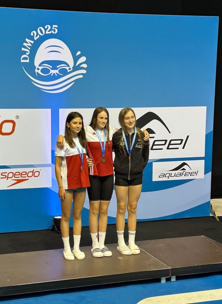 Nicht minder spannend ging es bei den Mädels über 400m Freistil zu. Im jüngsten Jahrgang gewann Mia-Philine Spethmann (SC Delphin Ingolstadt) das bayerische Duell. In 4:41,28 schwamm sie zu Bronze, Elisa-Marie Gliesche von der SG Stadtwerke München ging mit 4:42,24 als Vierte medaillenlos aus. Mia-Philine Zwillingsschwester Pia-Marlene wurde Sechste (4:43,5).