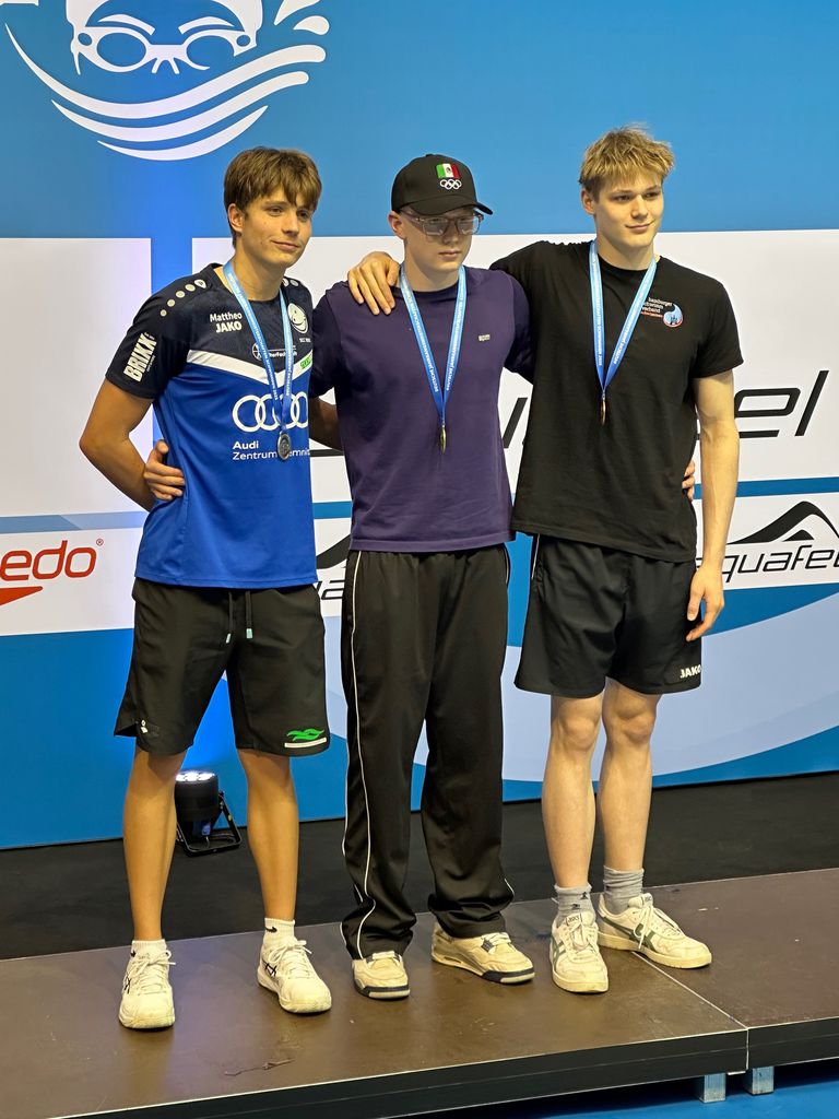 Bei den Jungs gab es über die lange Rückenstrecke eine weitere Bronzemedaille. Ovidiu Haidau von der SG Stadtwerke München holte sich diese mit 2:05,75 im Jahrgang 2008.