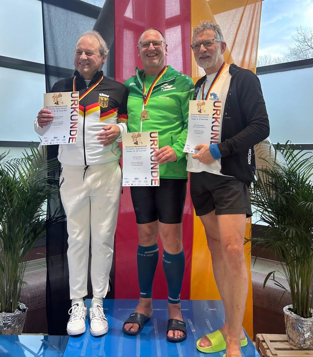 Dennoch ist die bayerische Bilanz mit 5 Gold-, sieben Silber- und fünf Bronzemedaillen respektabel. Allein über 400m Freistil, die den Vormittag füllten, schafften es zehn Athleten auf das Siegertreppchen. Die Hälfte davon waren Titel. Dr. Wolf-Rüdiger Weise von der TG Kitzingen holte sich seinen zweiten Titel in der AK 80 mit 10:18,79. Drei weitere Sieger schafften mit diesem ersten Platz sogar das Triple. Thomas Röhl vom TSV 1850 Lindau siegte souverän in der AK 65 mit 5:38,17, Robert Wenske vom TV Kempten in der AK 45 gewann in 4:52,36. Dietlind Weise tat es ihrem Mann nach und holte sich in der AK 75 den dritten Titel. Kristina Geuter von der SSG Coburg stand mit der schnellsten Zeit in der AK 70 (6:45,65) sogar zum vierten Mal ganz oben auf dem Treppchen und ist somit die erfolgsreichste bayerische Starterin des Wochenendes.