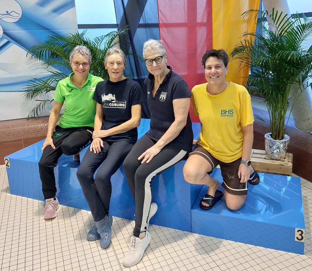 In der jüngsten AK 80-99 wurde das zweite Team der Fürstenfeldbrucker Wasserratten mit Felix Mende, Vinzenz Stark, Svenja Biesold und Miriam Kracher ebenfalls Vizemeister (10:13,85).